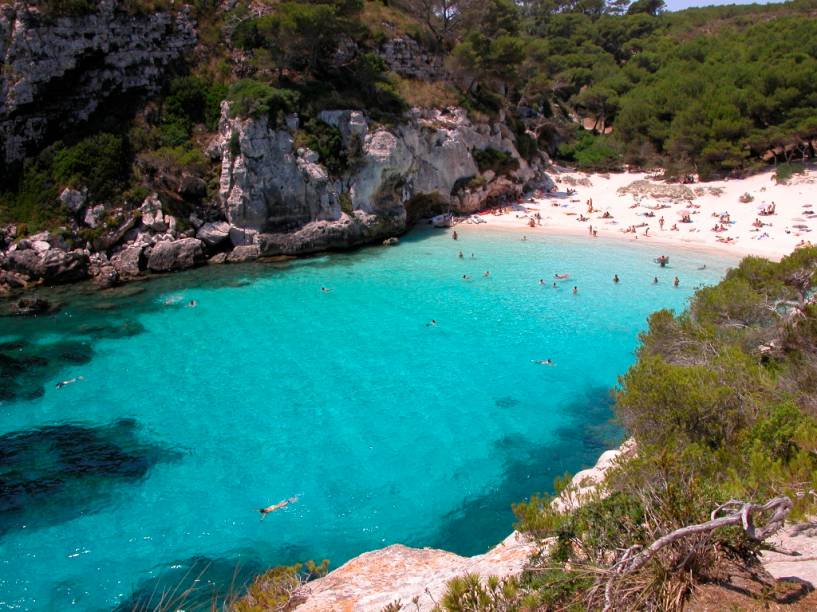 A ilha mais verde entre as Baleares tem um litoral recortado permeado por pequenas calas (prainhas) que podem facilmente estar entre as mais lindas do mundo. Quem chega de barco ou avião desembarca na maior cidade da ilha, Mahón – ou Maó, em menorquí, um desdobramento do catalão padrão, que incorpora algumas palavras herdadas da colonização britânica do século 18. Garrafa, por exemplo, é bótil (de bottle), e sapateiro, xumeca (de shoemaker). Apesar de gabar-se de, supostamente, ter inventado a maionese, Maó não é grande coisa. E tampouco as praias ali por perto. Portanto, o melhor a fazer é alugar um carro e cruzar os 45 quilômetros que a separam da divina Ciutadella, uma das cidades mais charmosas das Baleares, para descobrir seus encantos e as lindas praias da parte ocidental da ilha. Boa parte de Menorca é um parque nacional, o que significa uma quantidade enorme de praias totalmente desertas e impecavelmente preservadas. O melhor de tudo? Enquanto Maiorca e Ibiza lotam durante o verão, o turismo em Menorca ainda caminha de forma relativamente lenta, acompanhando o ritmo de vida por ali.