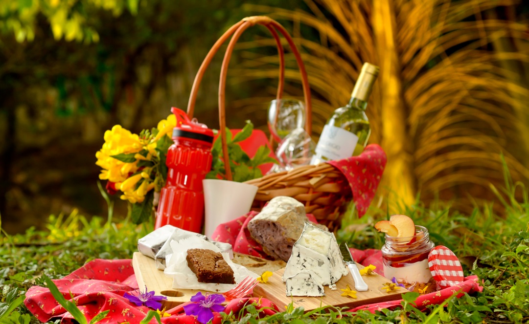 Claro, tem de pagar R$ 44 por cabeça pela cesta com quitutes não industrializados – vem pão, queijo, geleia, patê, suco, fruta, brownie e um lixinho, claro.