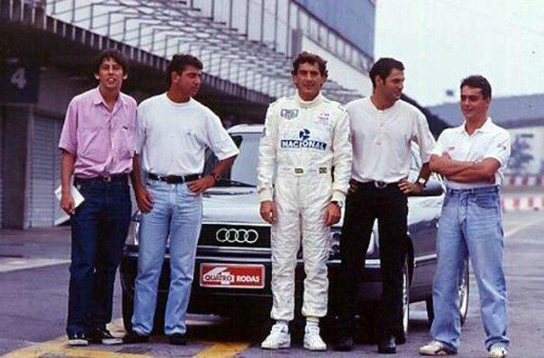 Até o Senna (à esquerda dele) provou do bom humor e da competência incomparável do cara.