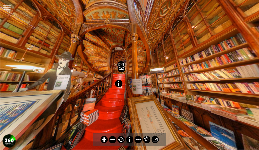 Uma das mais belas livrarias do mundo, a Lello foi aberta em 1906 em plena Rua das Carmelitas, no coração do centro histórico da cidade. Faz anos que ela tem status de atração turística, com sua bela fachada neogótica e interior rebuscado, recheado de vitrais. Mas desde que suas escadas serviram de inspiração para a escritora J.K. Rowling criar as escadas móveis de Hogwarts (dos tempos em que ela viveu na cidade e frequentou assiduamente suas prateleiras), que a coisa foi levada a sério. É comum haver filas de turistas na porta e um congestionamento de pessoas ávidas por selfies nas tais escadas. O movimento aumentou tanto que a livraria começou a cobrar uma taxa de entrada (€ 5), devolvida em caso de compra de livros. Na visita virtual, é possível ver de perto (e sem muvuca!) todos os detalhes, como o teto, os vitrais e os relevos de grandes escritores portugueses (entre eles Guerra Junqueiro e Eça de Queiroz) que decoram as prateleiras.