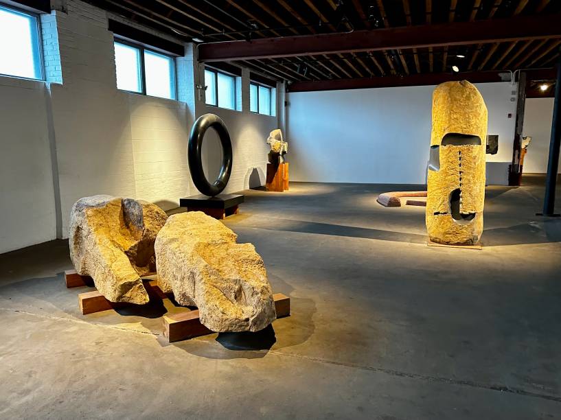 No museu do Queens, as raízes orientais do artista são fortemente sentidas em toda parte: no som ambiente de uma sala, no silêncio de outra, na arquitetura, nas obras. As peças são exibidas em salas e também no belo jardim de esculturas cercadas por árvores que na primavera ficam carregadas de flores delicadas.