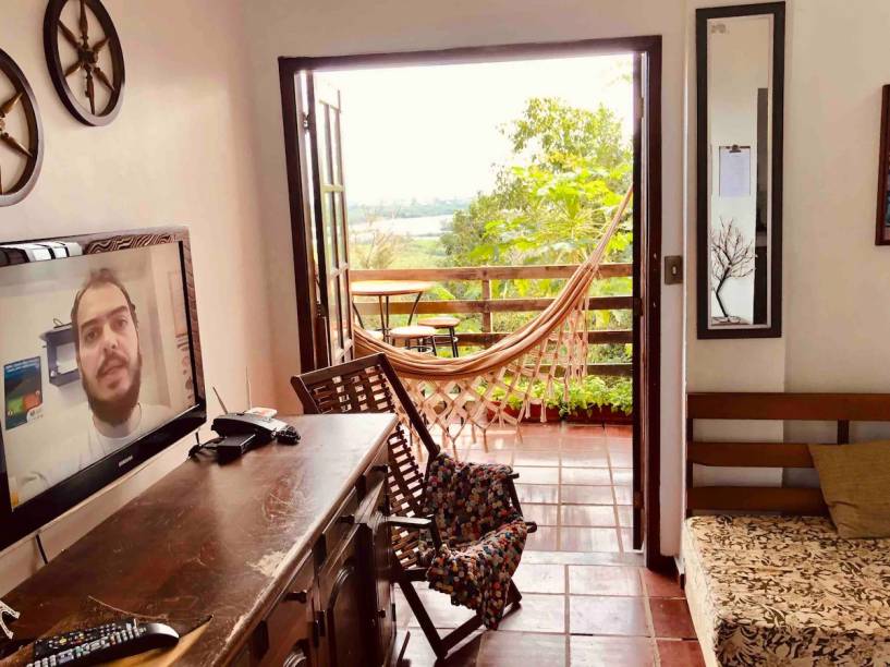 Comentário de quem já alugou: “O espaço é bem amplo, lindo e acolhedor. Estávamos com receio do calor intenso do verão por não ter ar-condicionado na sala, apenas no quarto, mas o apartamento não fica quente. Além disso, eles disponibilizam um ventilador super silencioso que funciona muito bem! A ladeira é muito alta, então se torna inviável sair a pé. Porém, pedimos comida e supermercado por aplicativo e chegou super fácil! Cozinha bem equipada e muito bonita! Todo o apartamento tem uma vista deslumbrante, inclusive o lavabo! O nascer do sol foi o mais lindo que já vi na vida! Ficar na piscina e ver essa vista não tem preço!”