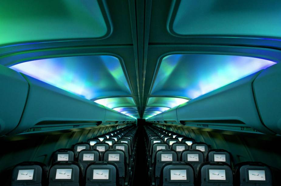 Companhia cria aurora boreal com luzes LED dentro de avião