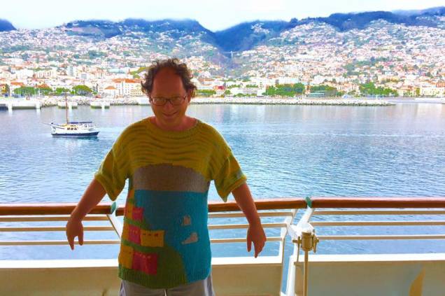 A melhor parte disso tudo é que Barsky realmente viaja até esses lugares e é fotografado em frente ao monumento que está representado na blusa que ele veste. É quase um Inception do tricô.